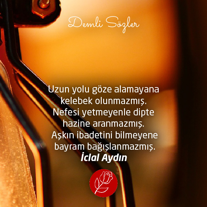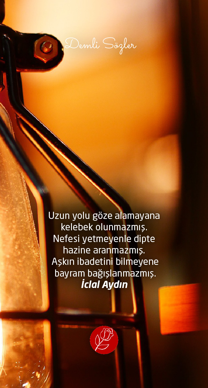 "Uzun yolu göze alamayana kelebek olunmazmış. Nefesi yetmeyenle dipte hazine aranmazmış. Aşkın ibadetini bilmeyene bayram bağışlanmazmış."