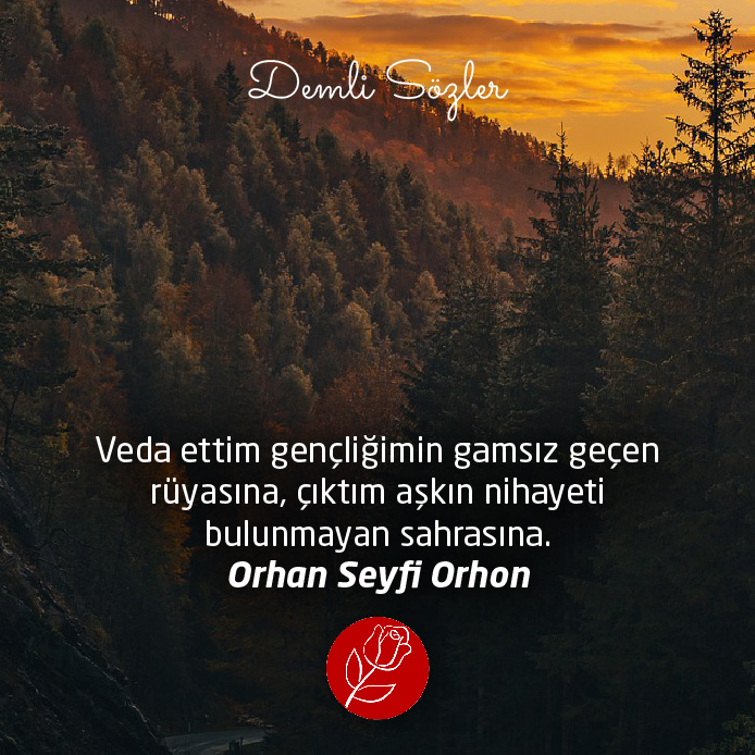 "Veda ettim gençliğimin gamsız geçen rüyasına, çıktım aşkın nihayeti bulunmayan sahrasına."