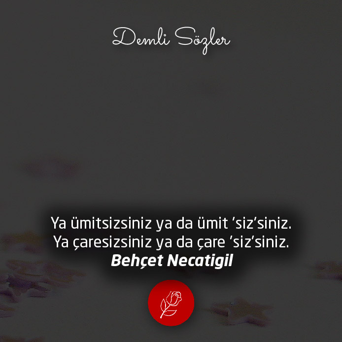 "Ya ümitsizsiniz ya da ümit 'siz'siniz. Ya çaresizsiniz ya da çare 'siz'siniz."