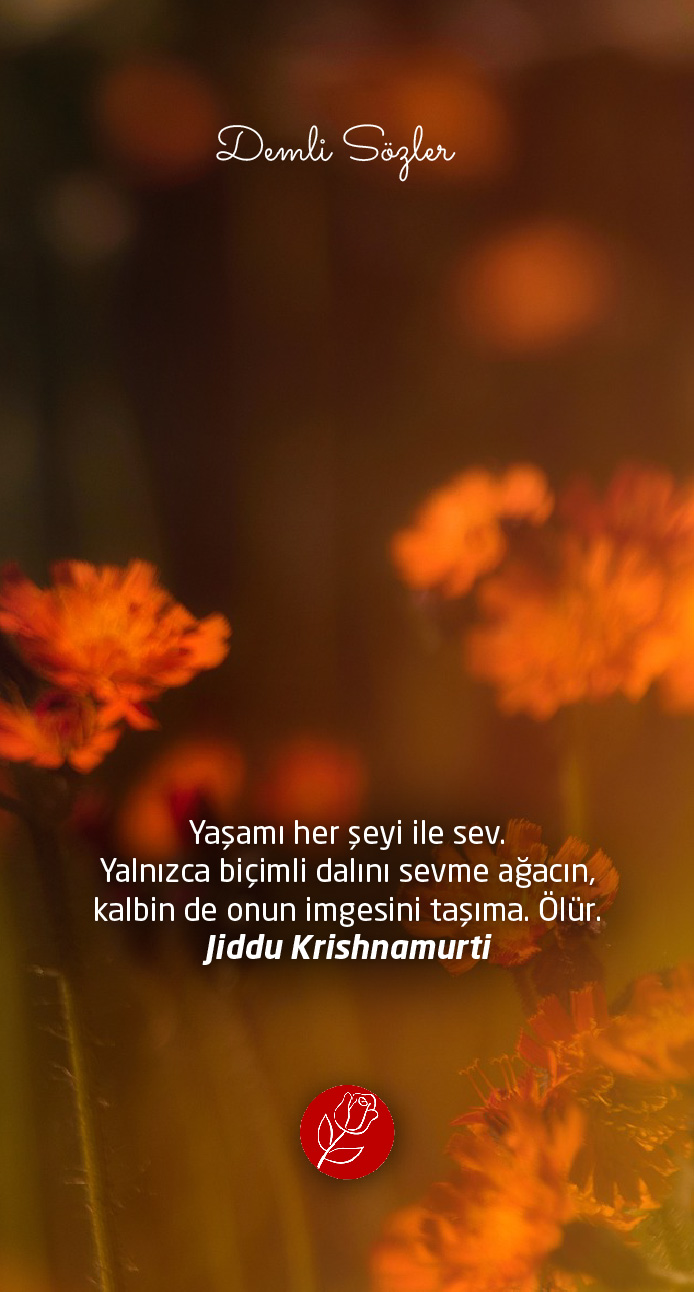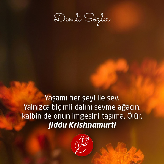 "Yaşamı her şeyi ile sev. Yalnızca biçimli dalını sevme ağacın, kalbinde onun imgesini taşıma. Ölür. "