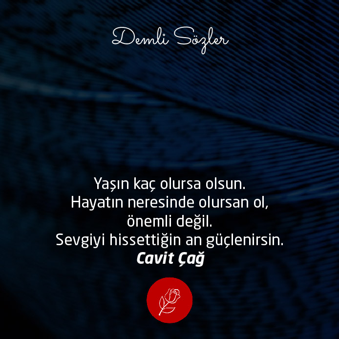"Yaşın kaç olursa olsun.Hayatın neresinde olursan ol , önemli değil. Sevgiyi hissettiğin an güçlenirsin."