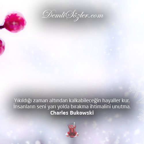 "Yıkıldığı zaman altından kalkabileceğin hayaller kur. İnsanların seni yarı yolda bırakma ihtimalini unutma."