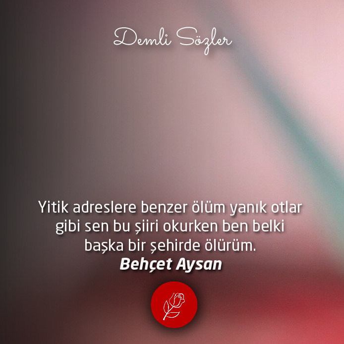 "Yitik adreslere benzer ölüm yanık otlar gibi sen bu şiiri okurken ben belki başka bir şehirde ölürüm."
