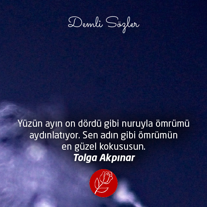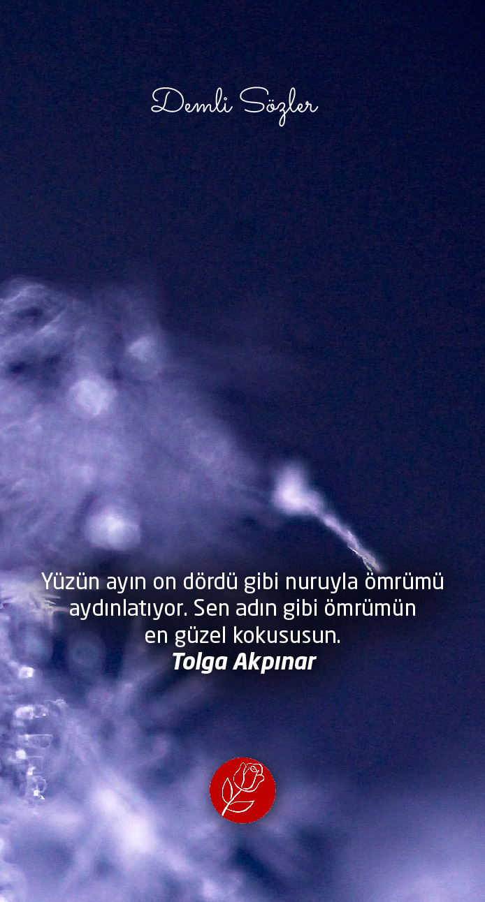 "Yüzün ayın on dördü gibi nuruyla ömrümü aydınlatıyor. Sen adın gibi ömrümün en güzel kokususun."