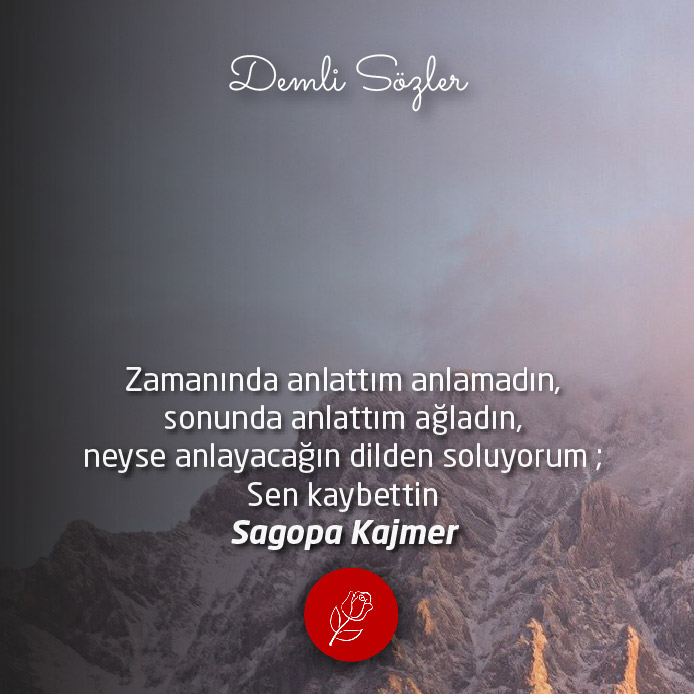 "Zamanında anlattım anlamadın , sonunda anlattım ağladın , neyse anlayacağın dilden soluyorum ; Sen kaybettin"